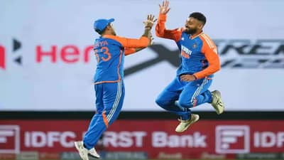 तसेच भुवनेश्वर कुमारनेही कुलदीप आणि वरुणप्रमाणे कामगिरी केली आहे. भुवनेश्वरने टी 20I कारकीर्दीतील 87 सामन्यांमध्ये 2 वेळा 5 विकेट्स मिळवल्या आहेत. मात्र भुवी आणि कुलदीपच्या तुलनेत वरुणने अवघ्या 16 व्या सामन्यातच 2 वेळा 5 विकेट्स घेण्याची उल्लेखनीय कामगिरी केली. वरुणला त्याच्या या कामिगिरीसाठी 'मॅन ऑफ द मॅच' पुरस्कारने गौरवण्यात आलं. (Photo Credit : Bcci)
