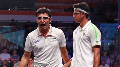 या स्पर्धेत सर्वात महत्त्वाचा सामना भारत आणि पाकिस्तान यांच्यात होता. पुरूष दुहेरी सामन्यात दोन्ही प्रतिस्पर्धी आमनेसामने आले होते. यात अभय सिंह आणि वेलावन सेंथिलकुमार या जोडीने पाकिस्तानच्या नूर जमाना आणि नासिर इकबाल या जोडीला 2-1 (9-11, 11-5,11-5) ने पराभूत केलं. पहिल्या फेरीत पाकिस्तानने सरशी घेतली होती. त्यानंतर भारताने जोरदार कमबॅक करत पराभवाची धूळ चारली. (File Photo: Getty Images)