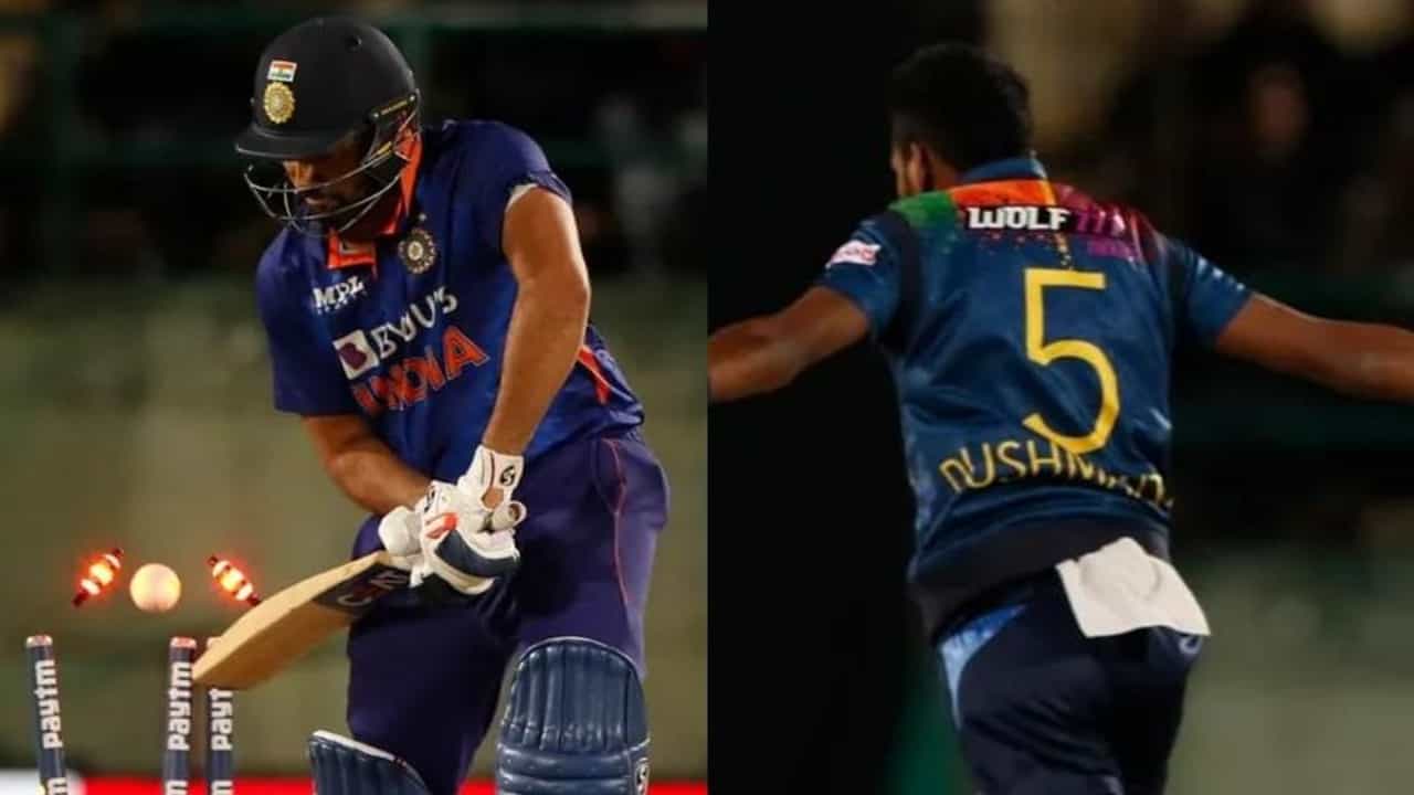 कप्तान रोहितचा जगभरात डंका वाजत असला तरी शनिवारी खेळवण्यात आलेला सामना रोहित शर्मासाठी वैयक्तिकरित्या चांगला नव्हता आणि तो पहिल्याच षटकात वेगवान गोलंदाज दुष्मंता चामीराच्या गोलंदाजीवर त्रिफळाचित झाला. चामीराने रोहितला बाद करण्याची ही पाचवी वेळ आहे. रोहित शर्माने T20 मध्ये आजपर्यंत रोहितला 26 चेंडू टाकले आहेत, ज्यामध्ये रोहितने केवळ 32 धावा केल्या आहेत, त्यात तो 5 वेळा बाद झाला आहे. (Photo: BCCI)