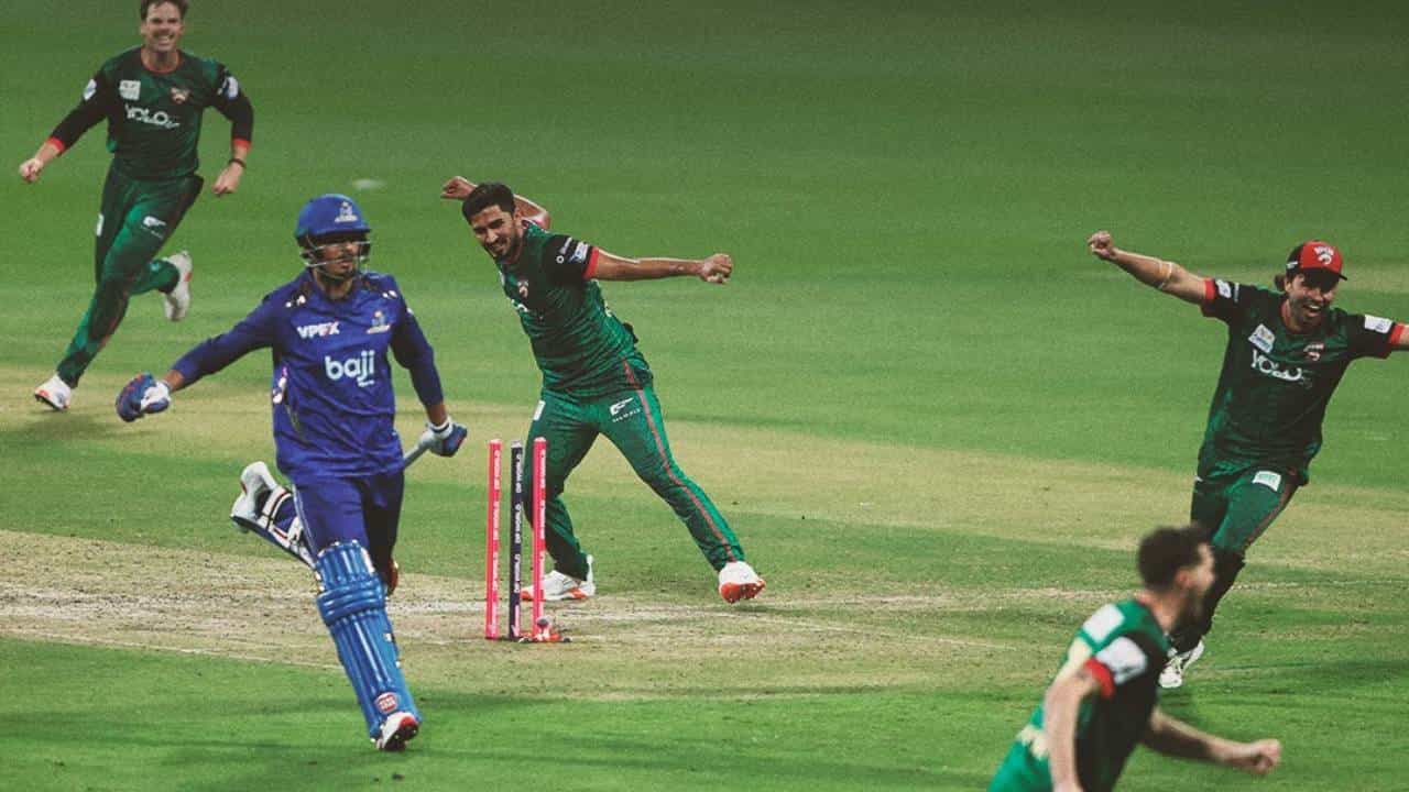 आंतरराष्ट्रीय टी20 लीग स्पर्धेत नवीन चॅम्पियन सापडला आहे. 4 जानेवारी 2025 च्या रात्री दुबई आंतरराष्ट्रीय स्टेडियमवर झालेल्या ILT20 फायनलमध्ये सॅम कुरनच्या नेतृत्वाखालील डेझर्ट वायपर्सने एमआय एमिरेट्सचा 46 धावांनी पराभव करून इतिहास रचला. (Photo- MI Emirates Twitter)