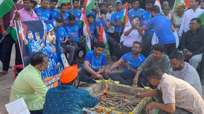 भारतीय टीमच्या विजयासाठी क्रिकेटप्रेमींनी पूजा केलेली आहे. बॅटची पूजा यावेळी करण्यात आली. टीम इंडियाला सदिच्छा देण्यात आल्या.