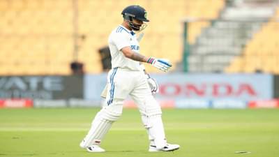 टीम इंडियाचा अनुभवी फलंदाज आणि माजी कर्णधार विराट कोहली न्यूझीलंड विरूद्धच्या पहिल्या कसोटी सामन्यातील दुसऱ्या दिवशी शून्यावर बाद झाला. विराट अनेक वर्षांनी तिसऱ्या स्थानी खेळायला आला. विराटला 9 बॉल खेळूनही खातं उघडता आलं नाही. (Photo Credit : Bcci)