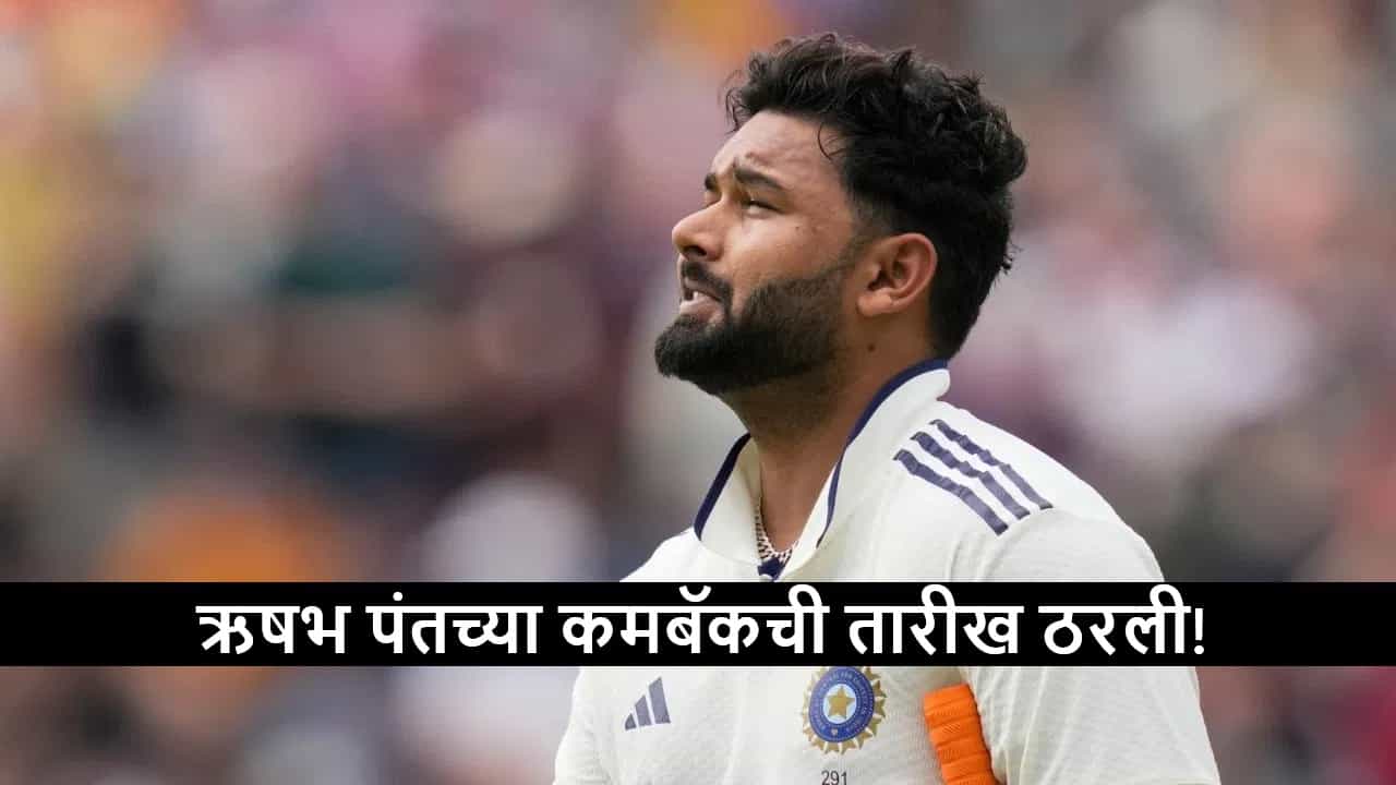 Rishabh Pant Comeback : टीम इंडियाचा विकेटकीपर बॅट्समन ऋषभ पंत इंग्लंड दौऱ्यातील दुखापतीनंतर कमबॅक करण्यासाठी सज्ज झाला आहे. ऋषभ मैदानात केव्हा उतरणार? जाणून घ्या तारीख.