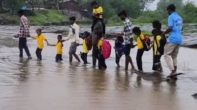 नंदुरबारमधील नवापूर तालुक्यातील करंजाळी ग्रामपंचायतील वाघेरे वस्तीतील शाळेकरी मुलांना जाण्यासाठी रस्ता नाही. यामुळे मुलांना जीव धोक्यात घालून शिक्षण घेण्यासाठी प्रवास करावा लागत आहे.