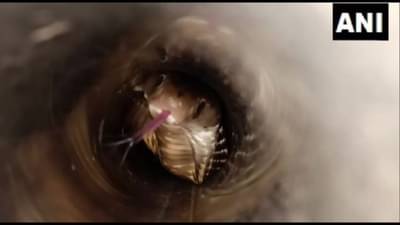 स्टीलच्या पाईपमध्ये अडकलेल्या क्रोब्रा जातीच्या सापाला वाचवण्यात आता यश आलं आहे.