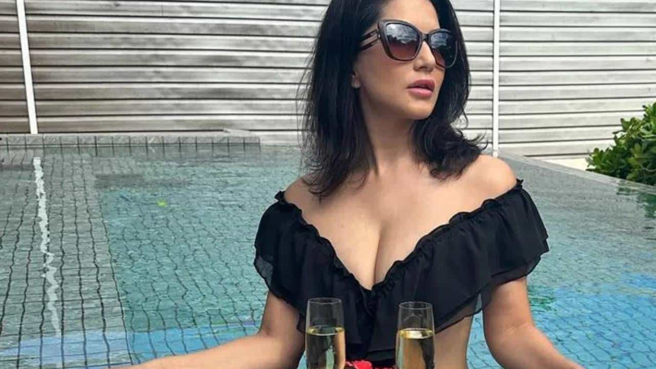 Sunny Leone | पूलमध्ये शाही नाश्ता करताना दिसली सनी लियोनी, वाईन आणि बरीच काही