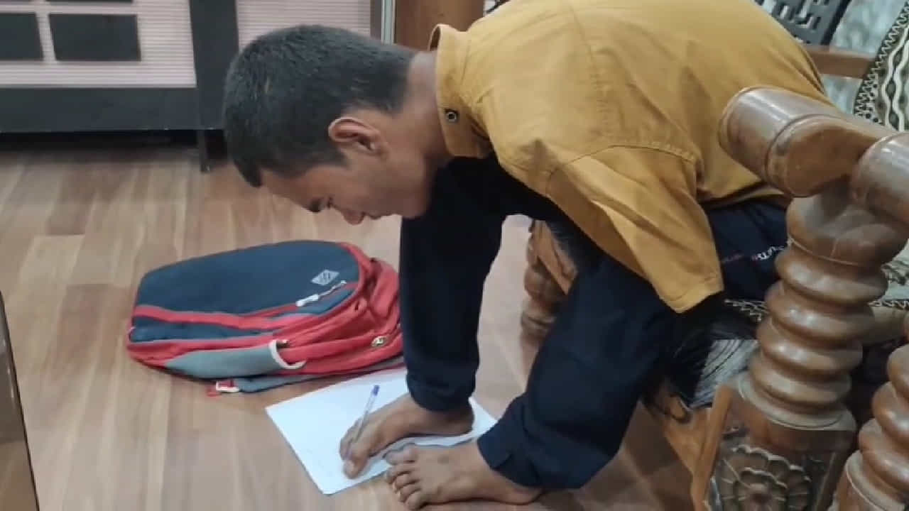 जिद्दीला सलाम! दोन हात नसताना हा विद्यार्थी पायाने देतोय बारावीचे पेपर, दहावीचे गुण पाहून तुम्ही कराल कौतुक