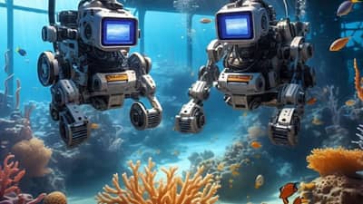 समुद्राच्या तळाशी संशोधन करणारे हे रोबोर्ट्स अत्याधुनिक तंत्रांने युक्त आहेत. हे रोबोट्स समुद्राच्या तळाचे हजारो फोटो घेत आहेत. याच रोबोट्सच्या माध्यमातून समुद्राच्या तळाची रचना कशी आहे, तिथे नेमकं काय आहे? हे जाणून घेण्याचा प्रयत्न केला जातोय. (सांकेतिक फोटो, फोटो सौजन्य- मेटा एआय)