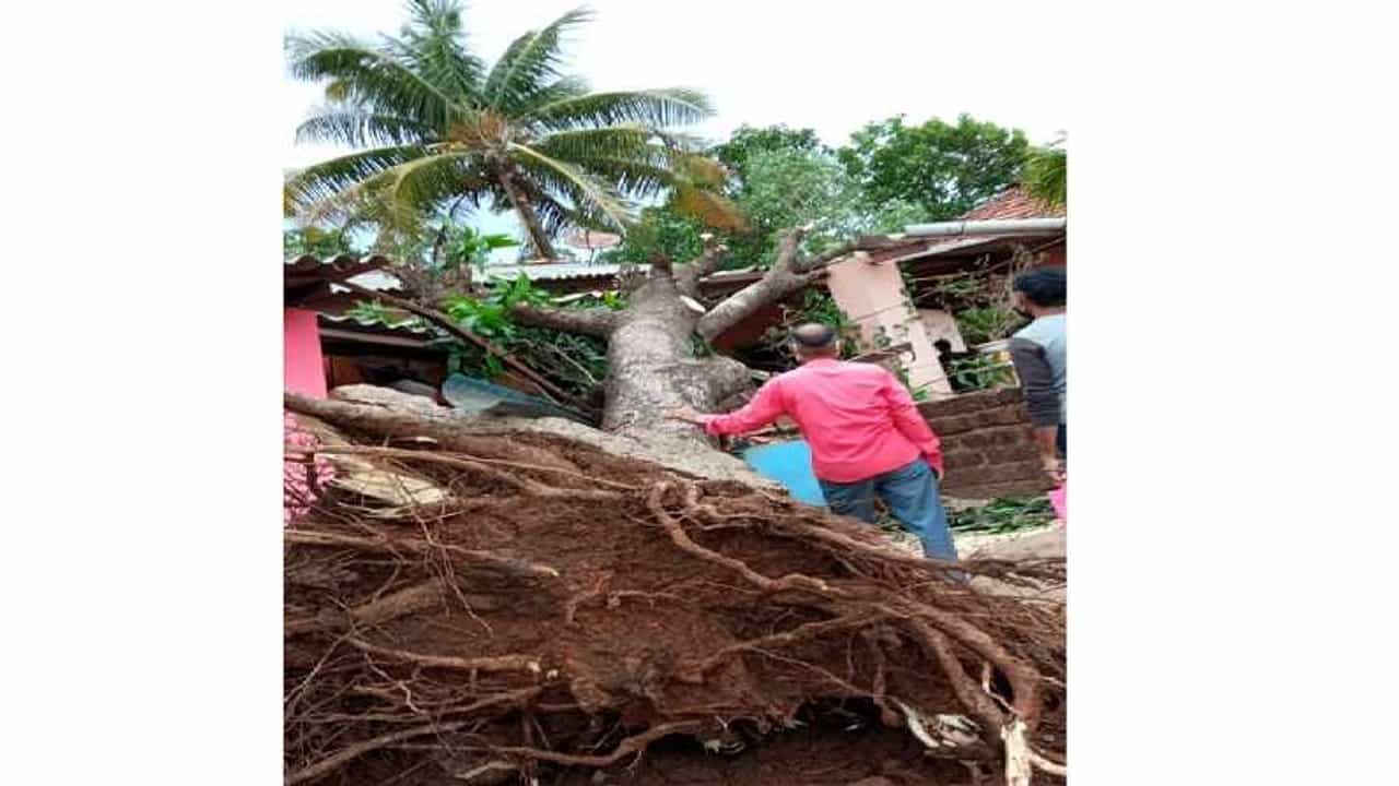 वेगाने वारे वाहू लागल्याने देवरुखमधील हरपुडे येथे झाड उन्मळून पडले.भलमोठं झाल हे बुधाजी घुग आणि पांडूरंग घुग यांच्या घरावर हे झाड पडलं.यामध्ये जिवीतहानी झाली नसली तरी घराचं मोठं नुकसान झालय.ग्रामस्थांकडून हे झाड कटींग करुन बाजूला करण्याचं काम सुरु आहे.