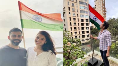 भारतीय क्रिकेट संघाचा माजी कर्णधार विराट कोहली सुद्धा स्वातंत्र्याच्या 75 वर्षाच्या सोहळ्यात सहभागी झाला आहे. विराट कोहलीने पत्नी अनुष्का शर्मा सोबत तिरंगा झेंडा फडकवला. (Anushka Sharma instagram)