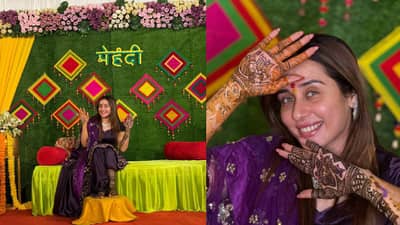 मेहंदीच्या कार्यक्रमात तेजस्विनीचा अत्यंत साधा आणि तितकाच आकर्षक लूक पहायला मिळाला. तिने जांभळ्या रंगाचा ड्रेस परिधान केला होता. तिच्या हात आणि पायांवर सुरेख मेहंदी काढण्यात आली आहे.