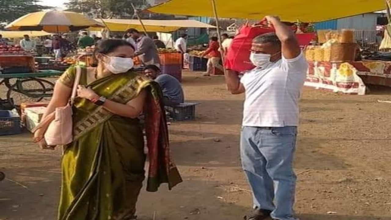 पत्नीसोबत भाजीपाला खरेदी करणारे हे आहेत औरंगाबादचे विभागीय आयुक्त सुनिल केंद्रेकर (आयएएस). (This is a photo of 'IAS Sunil Kendrekar' giving a sense of simplicity)
