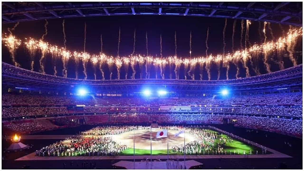 टोक्यो ओलिम्पिक सांगता समारोहाला संपूर्ण मैदानाला विविध रंगाची रोषणाई करण्यात आली होती. यावेळी समारोहाची सुरुवात भव्यदिव्य आतिषबाजीने करण्यात आली.