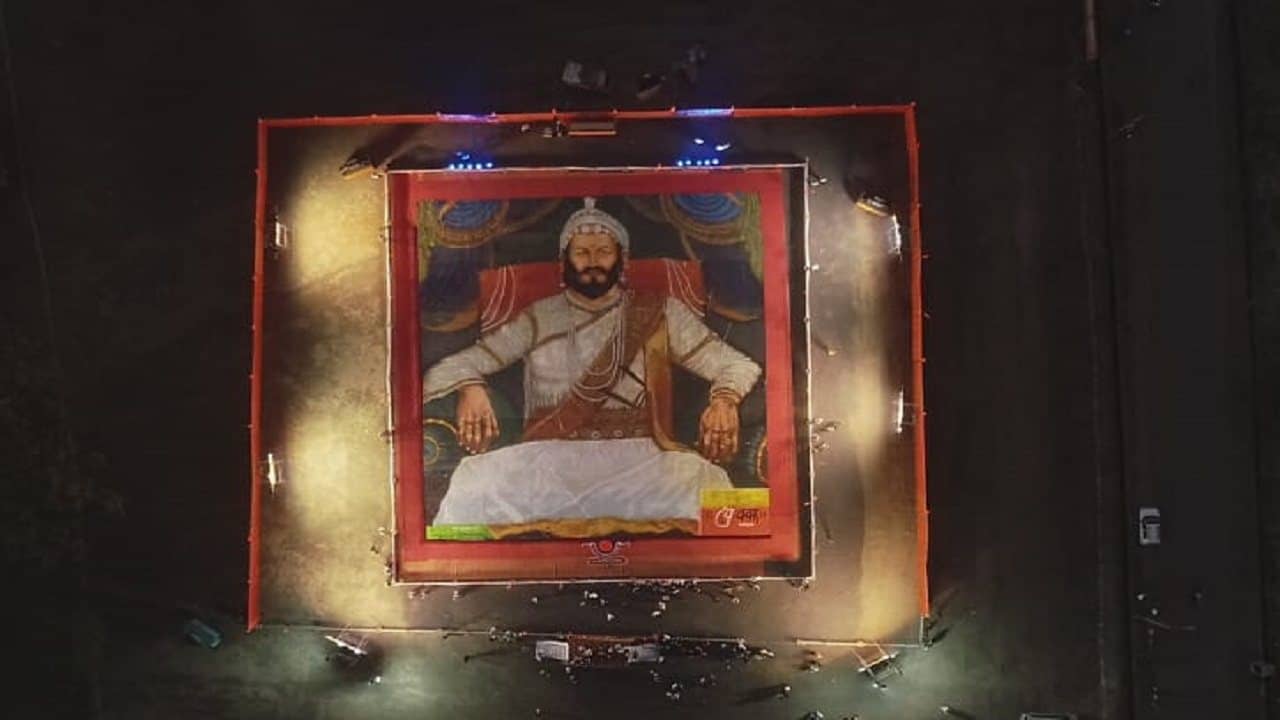 ड्रोनच्या माध्यमातून चित्रीकरण: 11 हजार स्क्वेअर फुटामध्ये साकारलेले चित्र जमिनीवरुन स्पष्ट पाहता येत नाही. याकरिता ड्रोनच्या माध्यमातून चित्रीकरण केले जात असून ते शिवप्रेमींना स्क्रीनवर दाखवले जात आहे.