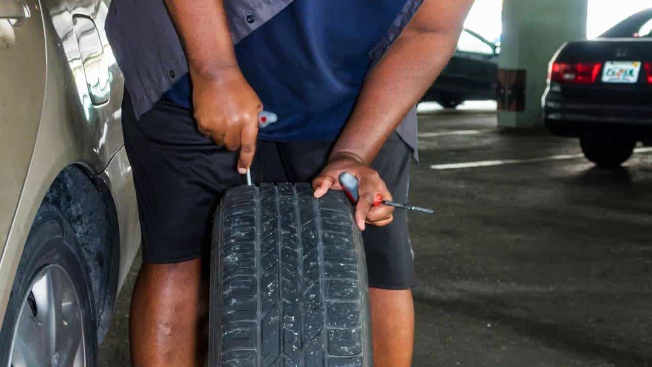रीमरने पंक्चरच्या छिद्राला रीम करा. त्यामुळे प्लग चांगल्या पद्धतीने चिकटेल. आता रबर सिमेंटला छिद्र आणि प्लग दोन्ही ठिकाणी लावा. प्लग म्हणजे पंक्चर रिपेयर स्ट्रिप छिद्रात टाका. जोरात दाबा. (Getty Images)