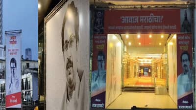 वरळी डोमच्या बाहेर राज ठाकरे आणि उद्धव ठाकरे यांच्या स्वागताची कमान लावण्यात आली आहे. ‘आवाज मराठीचा’ असा आशय या कमानीवर लावण्यात आला आहे. यावर एका बाजूला राज ठाकरे आणि दुसऱ्या बाजूला उद्धव ठाकरे यांचा फोटो आहे.