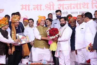 छत्रपती संभाजीनगर येथे आयोजित करण्यात आलेल्या 'वीर शिरोमणी महाराणा प्रतापसिंह महासंमेलन २०२३' या कार्यक्रमाला केंद्रीय संरक्षणमंत्री राजनाथ सिंह जी यांच्यासमवेत उपस्थित राहून मुख्यमंत्री एकनाथ शिंदे यांनी मनोगत मांडले.