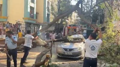 वसईत दोन कार आणि एका मोटारसायकलवर मोठे गुलमोहराचं झाड कोसळलं आहे. यात वाहनाचं प्रचंड मोठं नुकसान झालं आहे. वसई विरार महापालिकेच्या अग्निशमन दलाच्या जवानांनी घटनास्थळी येऊन, पडलेल्या भल्यामोठ्या झाडाला बाजूला काढलंय.