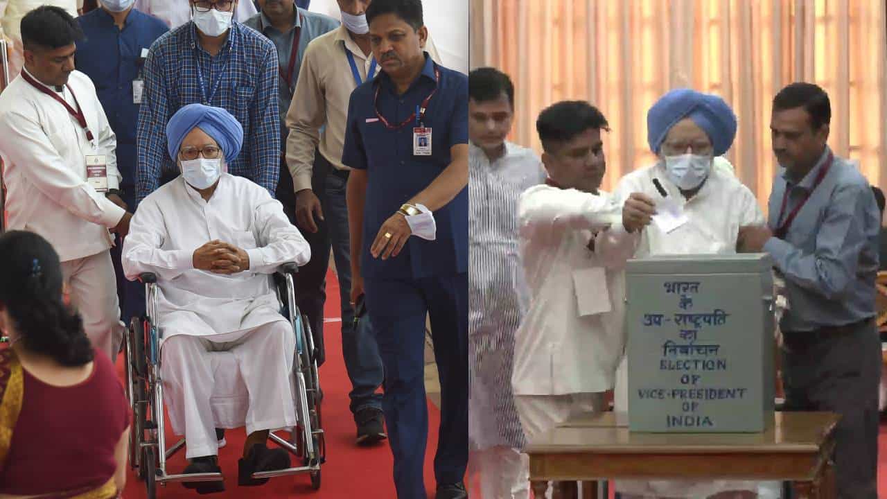 उपराष्ट्रपती निवडणूक : मतदानाचा हक्क बजावण्यासाठी माजी पंतप्रधान मनमोहन सिंग व्हीलचेअरवरून संसदेत दाखल