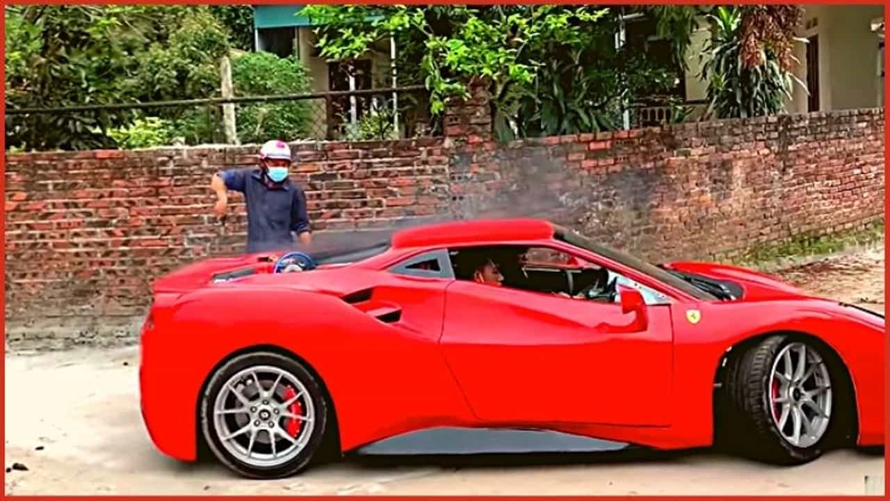 व्हिएतनामच्या एका माणसाने याच अभिलाषेपोटी फरारी कारसारखीच दुसरी एक कॉपी कार तयार करुन आपल्या घरासमोर लावली आहे. (vietnam ferrari copy car ferrari 488 gt)