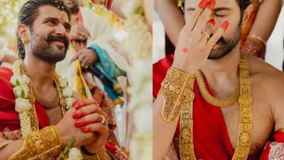 हातावर आल्ता, भरजरी दागिने, कमरपट्टा, बाजूबंद.. अशा अत्यंत पारंपरिक अंदाजात विजय दिसून आला. त्याने धोती आणि त्यावर शॉल परिधान केला होता. दाक्षिणात्य वर म्हणून विजय अत्यंत सुंदर दिसत होता, अशा प्रतिक्रिया नेटकऱ्यांनी दिल्या आहेत.