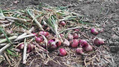 दुष्काळात तेरावा : एकीकडे कांद्याची आवक वाढत असल्याने बाजारपेठेतील दर घसरु लागले आहेत. तर दुसरीकडे एका रात्रीतून शेत शिवारचे चित्रच बदलत आहे. हवामान विभागाच्या अंदाजानुसार झालेल्या पावसामुळे कांद्याचे नुकसान झाले आहे. काढणीच्या प्रसंगीच शेतामध्ये पाणी साचल्याने कांदा नासण्याची भीती व्यक्त होत आहे.