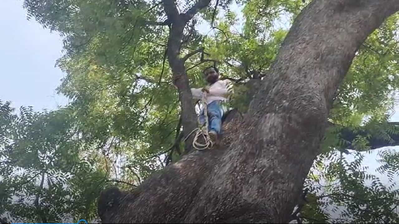 दखल कोणी घेत नसल्याने उपसरपंचांनी झाडावर चढून विरुगिरी आंदोलन सुरू केलं आहे. त्यावेळी त्या झाडाच्या खाली परिसरातले अनेक लोक जमल्याचे दिसत आहे.