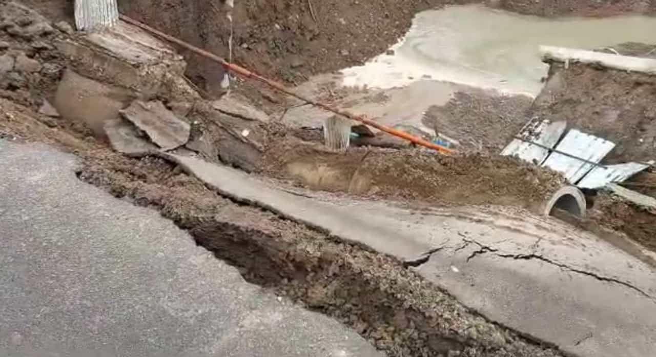 रस्ता खचण्याची घटना घडली तेव्हा त्या ठिकाणी कोणीही नव्हते. अन्यथा मोठी दुर्घटनाही घडली असती. या ठिकाणी पिण्याच्या पाण्याची पाईपलाईन ही फुटली आहे.