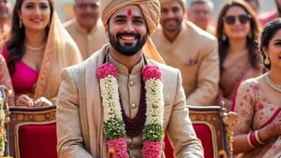 आजकाल नवरदेवाची वरात मोठ्या थाटात काढली जाते. नवरदेवाला घोड्यावर बसवून त्याची एका प्रकारे मिरवणूकच काढली जाते. त्याच्यापुढे ढोल-ताशांचा गजर असतो. नवरदेव घोड्यावर थाटात बसून वरातीत मिरवत असतो. पण याच वरातीचे नेमके महत्त्व काय आहे? हे अनेकांना माहिती नसते. त्यामुळे वरात का काढतात, हे जाणून घेऊ या..(सांकेतिक फोटो- फोटो सौजन्य- मेटा एआय)