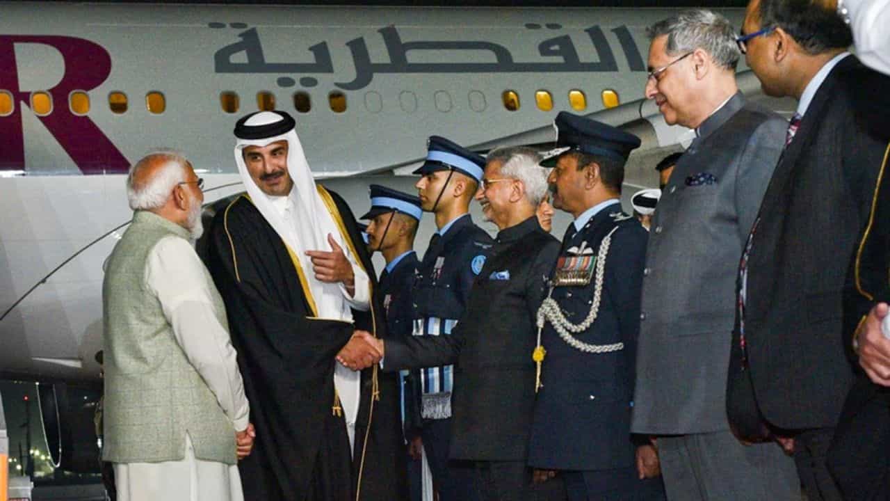 Qatar Amir visit to India: कतारचे अमीर शेख तमीम बिन हमाद अल थानी हे दोन दिवसीय भारत दौऱ्यावर आले आहेत. भारत आणि कतार यांच्यातील राजनैतिक संबंध अधिक दृढ होण्यासाठी त्यांची ही भेट अत्यंत महत्त्वाची मानली जात आहे. त्यामुळे पंतप्रधान नरेंद्र मोदी प्रोटोकॉल तोडून विमानतळावर पोहोचले आणि त्यांचे स्वागत केले.