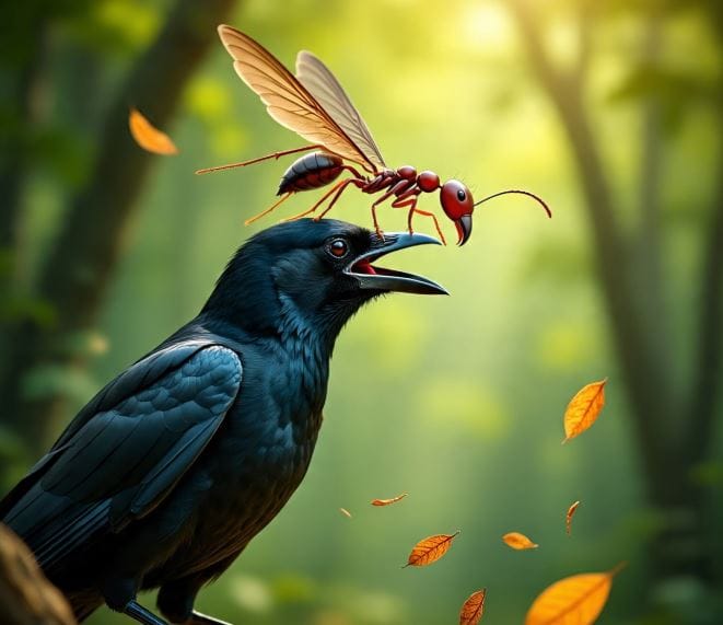 कावळा हा फारच अजब असा पक्षी आहे. शरीरावर मुंग्यांनी चावा घ्यावा म्हणून कावळा अक्षरश: प्रयत्न करतो. मुंगी चावली की कावळ्याला जीवदानच मिळते.