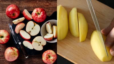 फळे आणि भाज्या कापल्यानंतर त्यांचा रंग बदलणे ही एक नैसर्गिक प्रक्रिया असली, तरी स्वयंपाकघरात काम करताना ती अनेकदा डोकेदुखी ठरते. विशेषतः बटाटे आणि सफरचंद कापल्यानंतर काही वेळातच काळी पडतात. पण यामागचे नेमकं कारण काय, तसेच बटाटे आणि सफरचंद कापल्यानंतर काळी पडू नयेत, यासाठी सोपे घरगुती उपाय आज आपण माहिती करुन घेऊया.