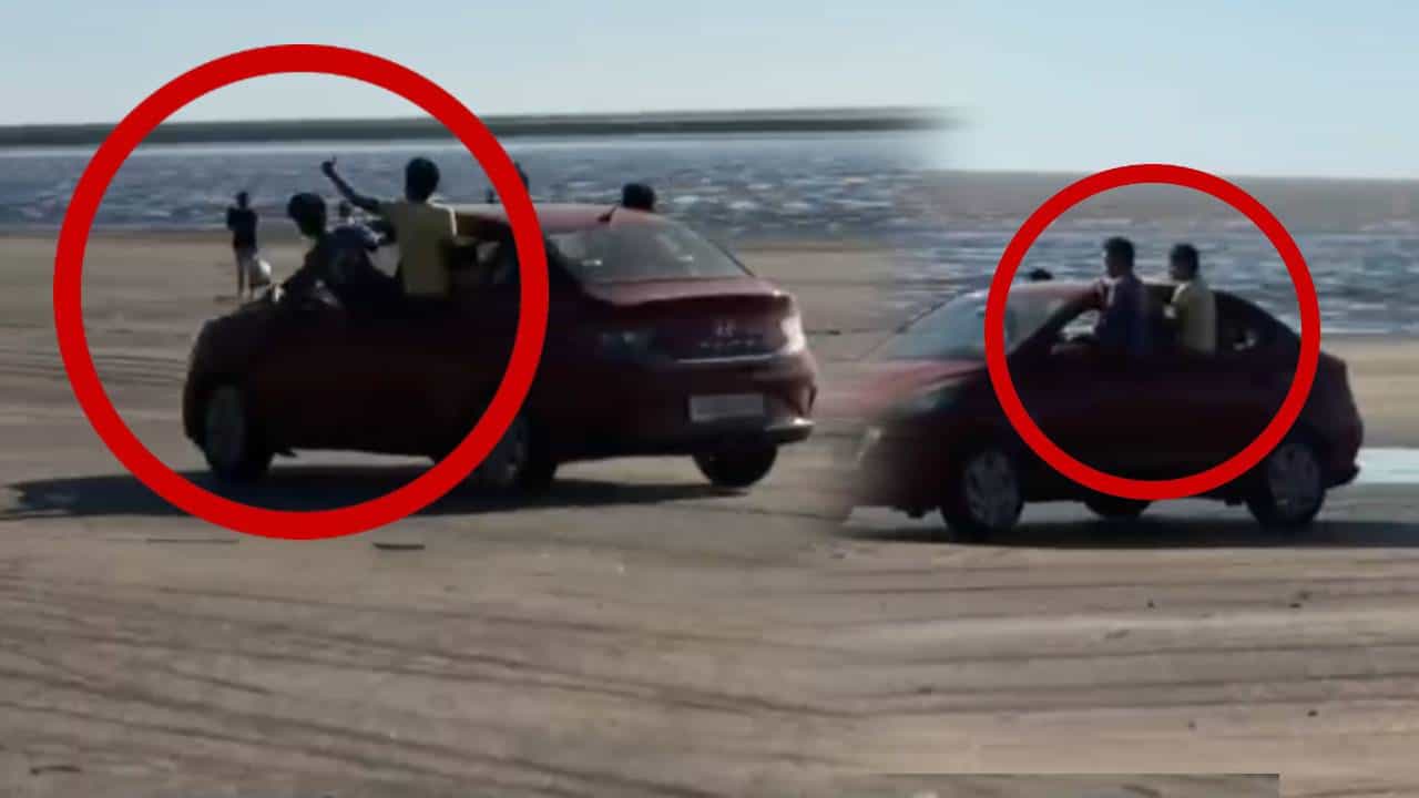 विशेष म्हणजे बिचवर इतरही काही लोक आहेत. लोक आनंदात बिचवर फिरत असताना दुसरीकडे ही महिला मात्र आपल्या मुलांना खिडकीमध्ये उभे करून स्टंट करत आहे. भरधाव वेगात ती कार चालवत आहे.