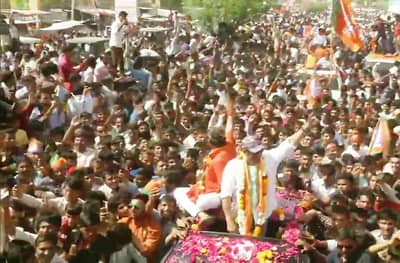 बारमेर, राजस्थान : भाजपात प्रवेश केल्यानंतर अभिनेता सनी देओलच्या रोड शोचं पहिल्यांदाच आयोजन करण्यात आलं होतं. राजस्थानमधील बारमेरचे भाजप उमेदवार कैलाश चौधरी यांच्या प्रचारात त्याने सहभाग घेतला. या रोड शोसाठी तुफान गर्दी जमली होती, सनी देओलला चाहत्यांकडून वेगवेगळ्या भेटवस्तू देण्यात आल्या. यावेळी त्याच्या सिनेमांमध्ये गाजलेले काही प्रसिद्ध डायलॉगही लावण्यात आले.