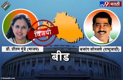 बीड लोकसभा मतदारसंघ : भाजपच्या उमेदवार डॉ. प्रीतम मुंडे यांनी बीड लोकसभा मतदारसंघात दणदणीत विजय मिळवला. त्यांच्याविरोधात राष्ट्रवादी काँग्रेसकडून बजरंग सोनवणे आणि वंचित बहुजन आघाडीकडून प्रा. विष्णू जाधव हे निवडणूक रिंगणात होते. भाजप आणि राष्ट्रवादी यांच्यात प्रमुख लढत झाली. अखेर डॉ. प्रीतम मुंडे यांनी राष्ट्रवादीच्या उमेदवारावर 1 लाख 78 हजार 920 मतांनी दणदणीत विजय मिळवला. विकासकारणावर ठाम विश्वास व्यक्त करणाऱ्या बीडकर जनतेच्या सुष्टशक्तीसमोर नतमस्तक, अशी प्रतिक्रिया प्रीतम मुंडेंनी यावेळी दिली. बीड लोकसभा मतदारसंघात दुसऱ्या टप्प्यात म्हणजेच 18 एप्रिलला मतदान झालं. इथे यंदा 66.6 टक्के मतदानाची नोंद झाली. या मतदारसंघात 2014 च्या तुलनेत मतदानाचा टक्का 2 टक्क्यांनी वाढला. शिवाय पहिल्यांदाच जातीय समीकरण घुसल्याने या मतदारसंघात मतदानापासून निकालापर्यंत धाकधूक पाहायला मिळाली होती.