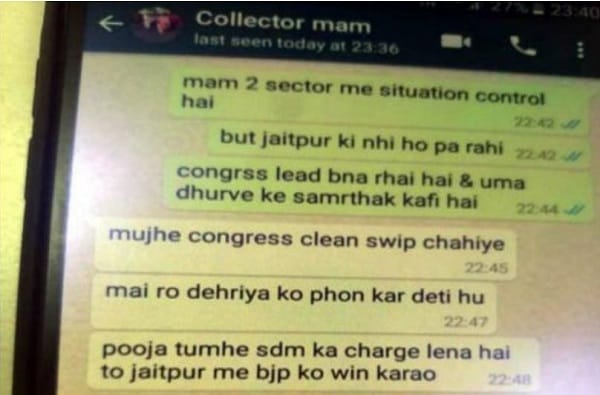 जिल्हाधिकारी- मला काँग्रेस क्लीन स्वीप हवंय, मी आरओ देहरीयाला फोन करते, पुजा तुला जिल्हाधिकारी व्हायचं असेल, तर जैतपूरमध्ये भाजपला जिंकवावं लागेल.