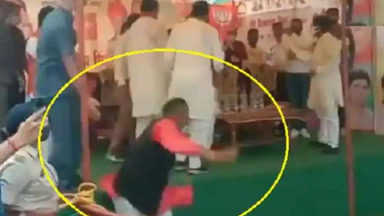 VIDEO: प्रदेश का नेता कैसा हो.. म्हणताच भाजपचा नेता स्टेजवरून धप्पकन पडला