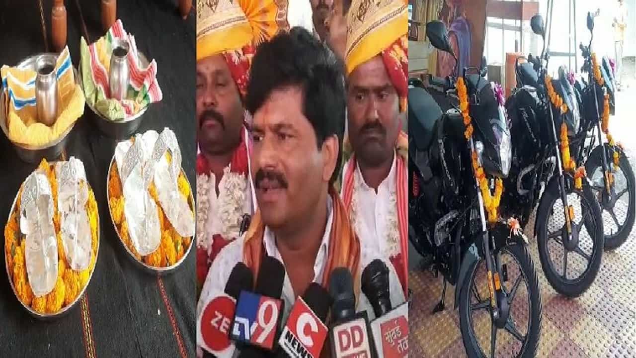(BJP MLC Gopichand Padalkar gifts Silver Chappal and Passion bike to volunteers who walked barefoot)