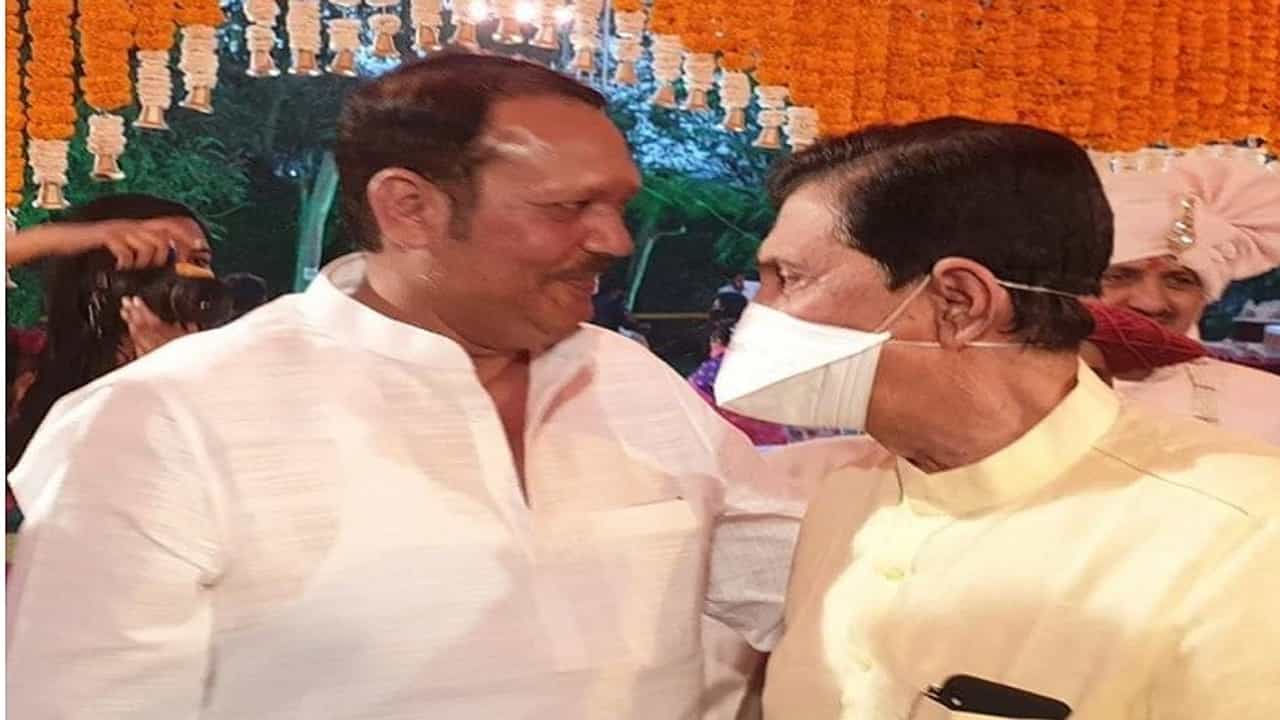 (BJP MP Chhatrapati Udayanraje Bhosle hugs Ramraje Naik Nimbalkar at Pune Wedding)