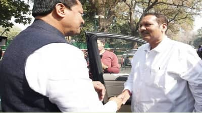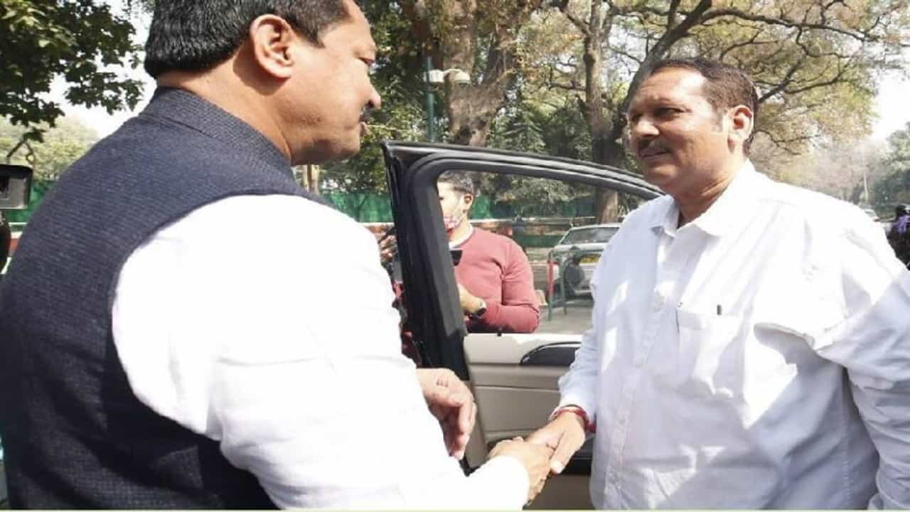 (Udyanraje Bhosle meets Nana Patole outside Sonia Gandhi residence)