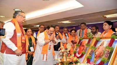 राष्ट्रीय कार्यकारिणीच्या बैठकीच्या उद्घाटनप्रसंगी भाजप अध्यक्ष जे पी नड्डा