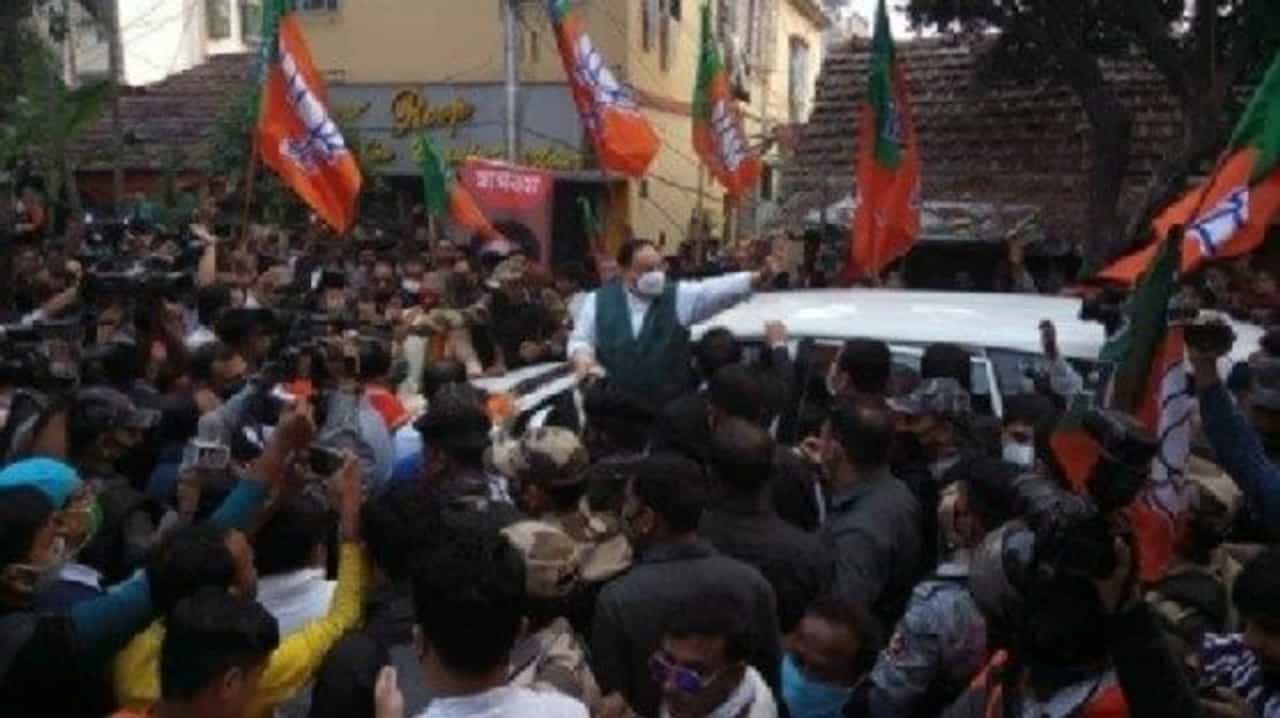 पश्चिम बंगाल : जेपी नड्डा यांच्या ताफ्यावर दगडफेक, वाहनांची तोडफोड, टीएमसी कार्यकर्त्यांवर आरोप