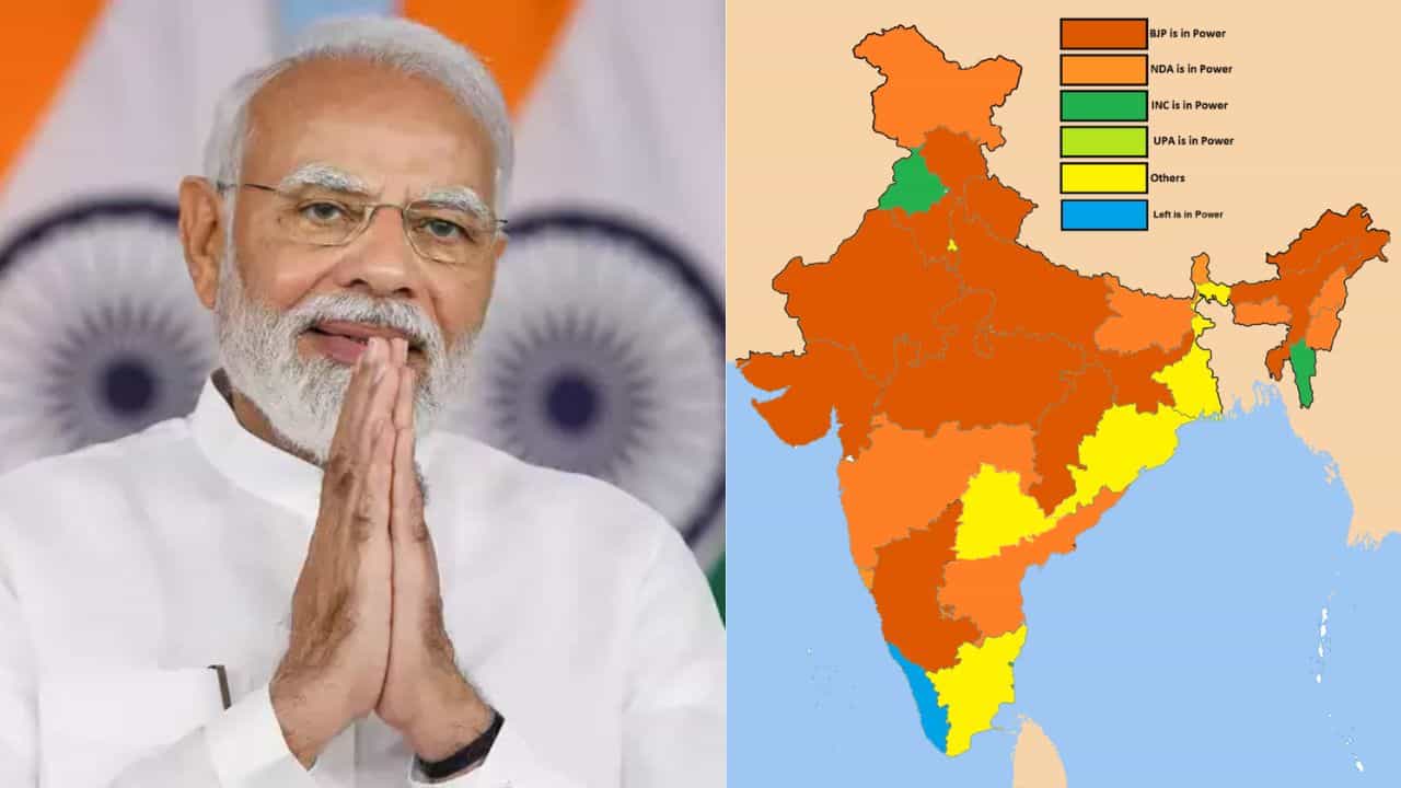 देशातील 28 राज्य आणि विधानसभा असलेल्या 2 केंद्रशासित प्रदेश यांच्यापैकी एकूण 16 राज्यांमध्ये भाजप आणि भाजपप्रणित एनडीएचं सरकार आहे. विशेष म्हणजे आता 12 अशी राज्य आहेत ज्यामध्ये भाजपचा मुख्यमंत्री आहे. या निवडणुकीआधी काँग्रेसची 7 राज्यांमध्ये सत्ता होती. पण आता केवळ 6 राज्यांमध्ये काँग्रेस आणि त्यांच्या आघाडीचं सरकार शिल्लक असणार आहे. या व्यतिरिक्त 8 असे राज्य आहेत जिथे काँग्रेस आणि भाजप दोन्ही पक्षांची सत्ता नाही. पण त्या राज्यांमधील काही सत्ताधारी पक्ष इंडिया आघाडीत सहभागी झाले आहेत.