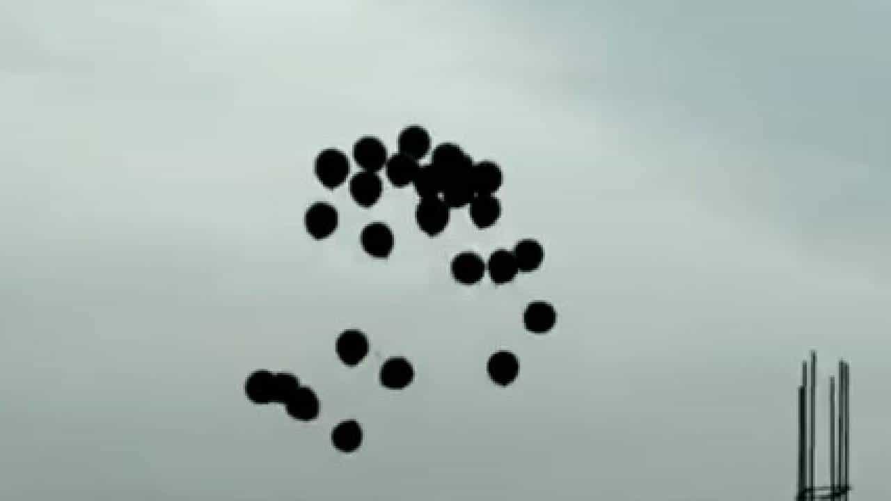 #WATCH | A Congress worker released black balloons moments after PM Modi’s chopper took off, during his visit to Andhra Pradesh.