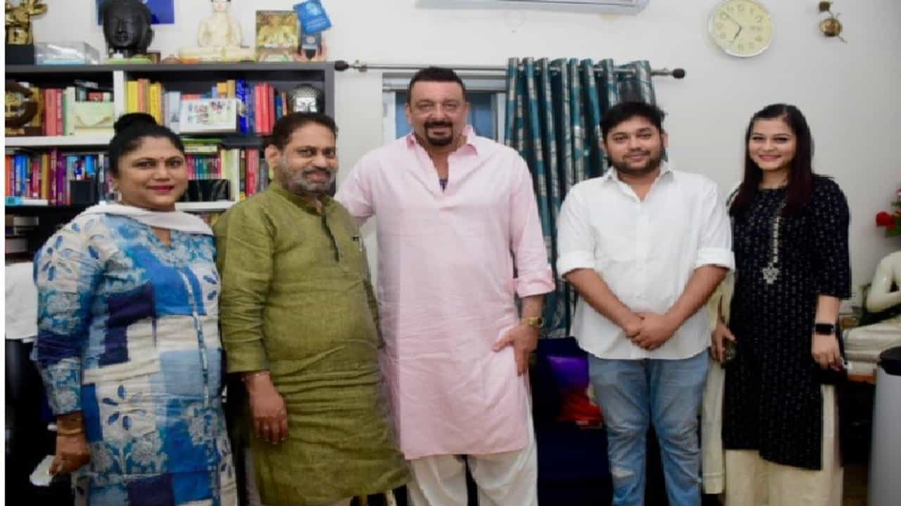 (Bollywood Actor Sanjay Dutt meets Congress Leader Nitin Raut Family Son Kunal Raut at Nagpur)