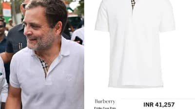 भाजपने आपल्या ट्विटर हँडलवर राहुल गांधी यांचा टी शर्ट घातलेला एक फोटो पोस्ट केला आहे. या फोटोत बाजूला तशाच टी-शर्टचा फोटोही पोस्ट केला आहे. तसेच तो टी-शर्ट कोणत्या ब्रँडचा आहे आणि त्या टी-शर्टची किंमत किती आहे हे सुद्धा त्यात लिहिलं आहे. राहुल गांधी यांनी ब्रिटिश लग्जरी फॅशन ब्रँड Burberryचा पोलो टी-शर्ट घातला आहे. त्याची किंमत 41 हजार 257 रुपये आहे, असं भाजपच्या ट्विटमधून स्पष्ट होतं. तसेच भारत, पाहा, असं ट्विट करून भाजपने राहुल गांधी यांच्यावर टीकास्त्र सोडलं आहे. भाजपच्या या ट्विटनंतर राहुल गांधी यांच्या बूट आणि टी-शर्टवरून अधिकच चर्चा रंगली आहे.