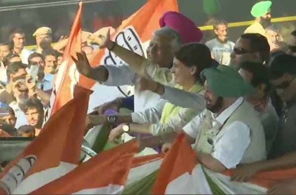VIDEO: रोड शोदरम्यान खुल्या ट्रकमध्ये प्रियांका गांधींनी ठेका धरला