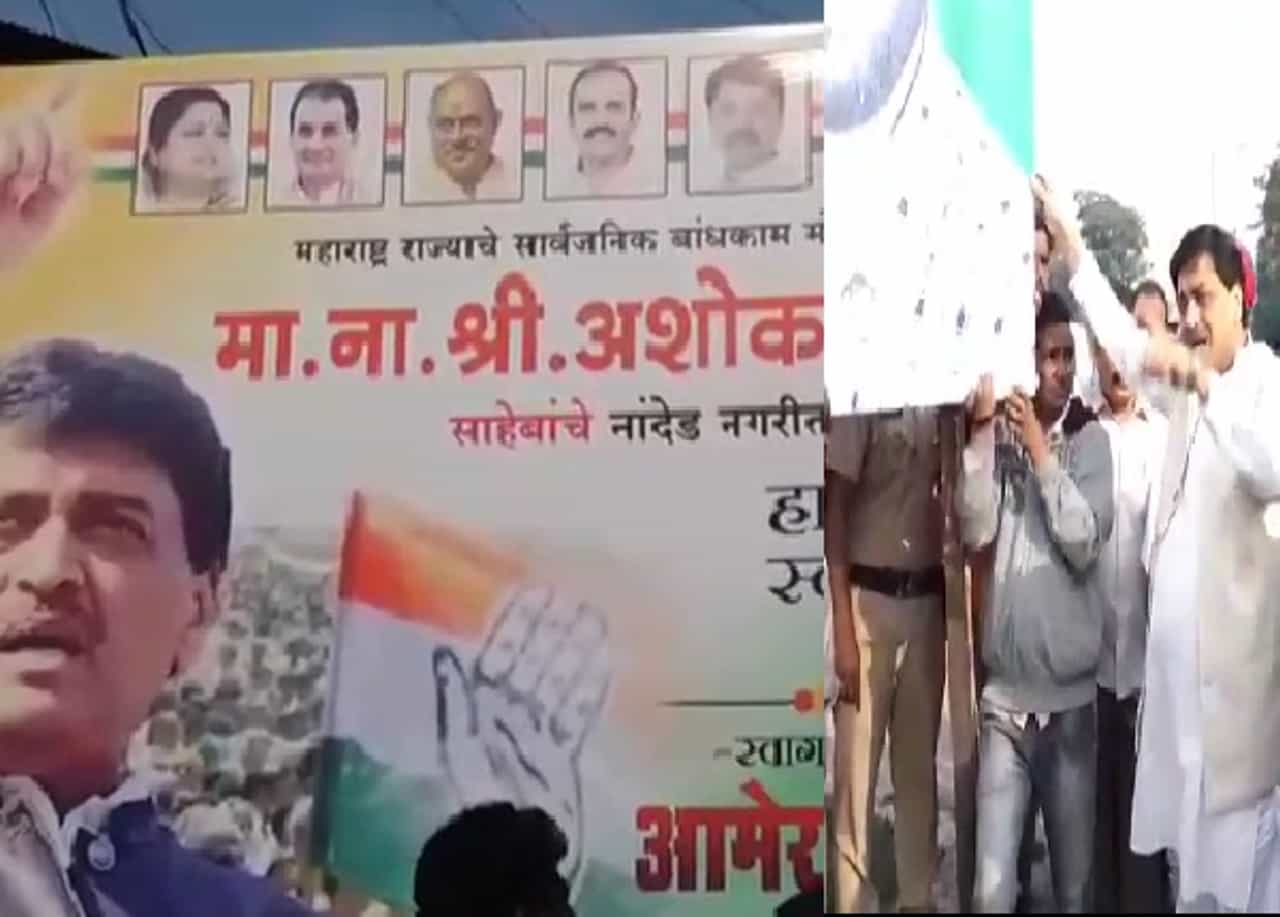 जेव्हा अशोक चव्हाण स्वतःच्या हाताने आपलंच बॅनर हटवतात…