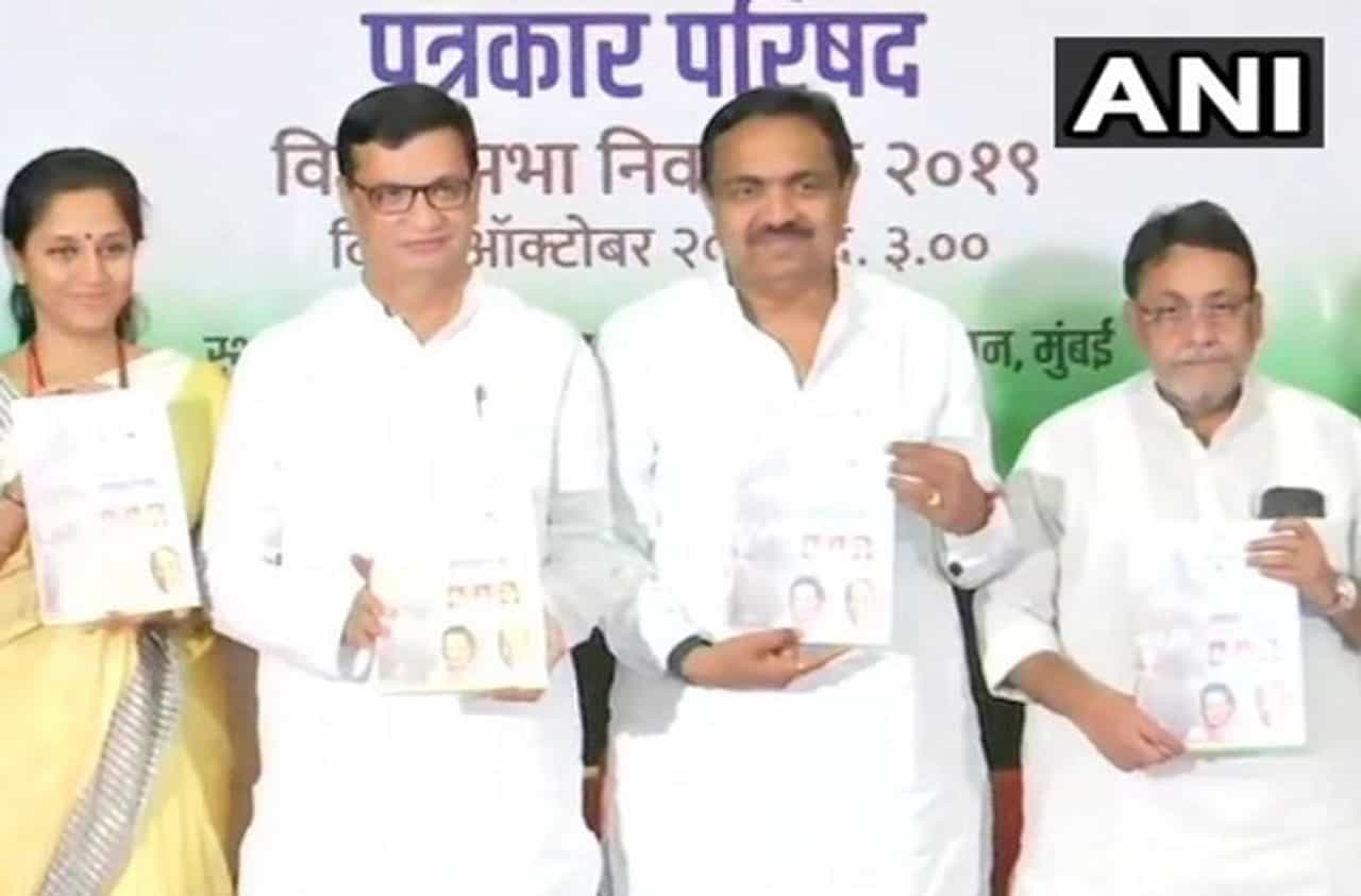 Mumbai: Congress-NCP release joint manifesto for the upcoming Maharashtra assembly elections on October 21. #MaharashtraElections2019 pic.twitter.com/rxtLhYReaD