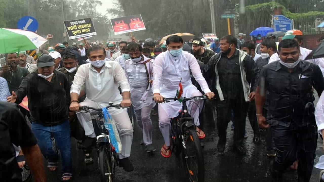 Congress rally in heavy rains against fuel price hike